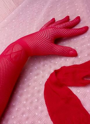 Перчатки сіточка, кольору фуксія (фото 3, реальний колір). Довжина на пів руки до локтя (фото). Добре тягнуться, універсальний розмір. Нейлон.