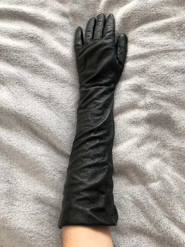 Высокие кожаные перчатки, носились 1 сезон, состояние идеальное. Размер —6, на среднюю руку. Идеально подходят под рукав 3/4. При покупке вместе с нутриевой шубой сделаю скидку 300 грн на комплект.
