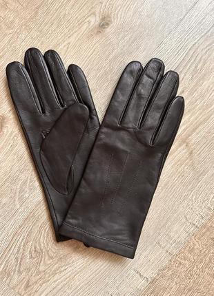 Классные женские перчатки,натуральная кожа,шоколадный цвет,