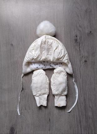 В наличии. Комплект шапка и перчатки. Размер 1-2 года