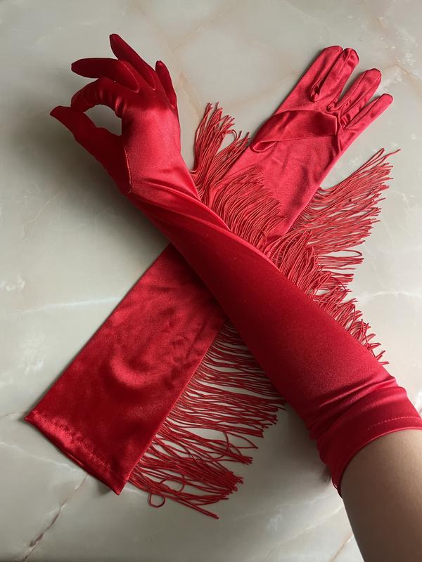 Новинка! высокие атласные красные перчатки выше локтя с декоративной бахромой, сексуальные...