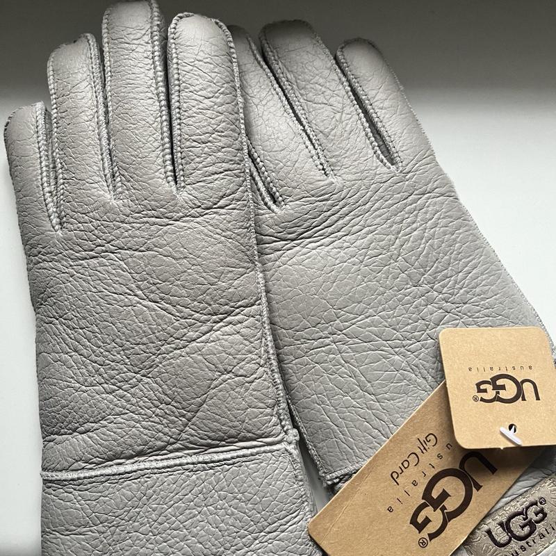 Классные зимние теплые перчатки на овчине Ugg. Светло-серого цвета. На женскую руку - ориентировочно на руку размер 7