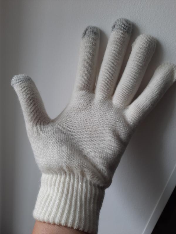 Теплые белые перчатки, не тонкие. с минимальной бусинкой