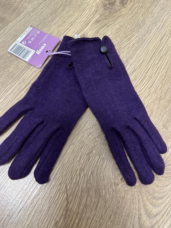 Вовняні перчатки без підкладки в насиченому баклажановому кольорі — тонкі, зручні, ідеально сідають по руці.