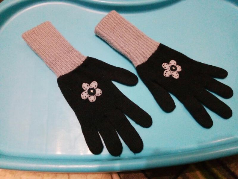 перчатки на девочку 10-12лет,состояние хорошое,цвет темносиний,длина 27см,ширина8см,пальчик 5.5см