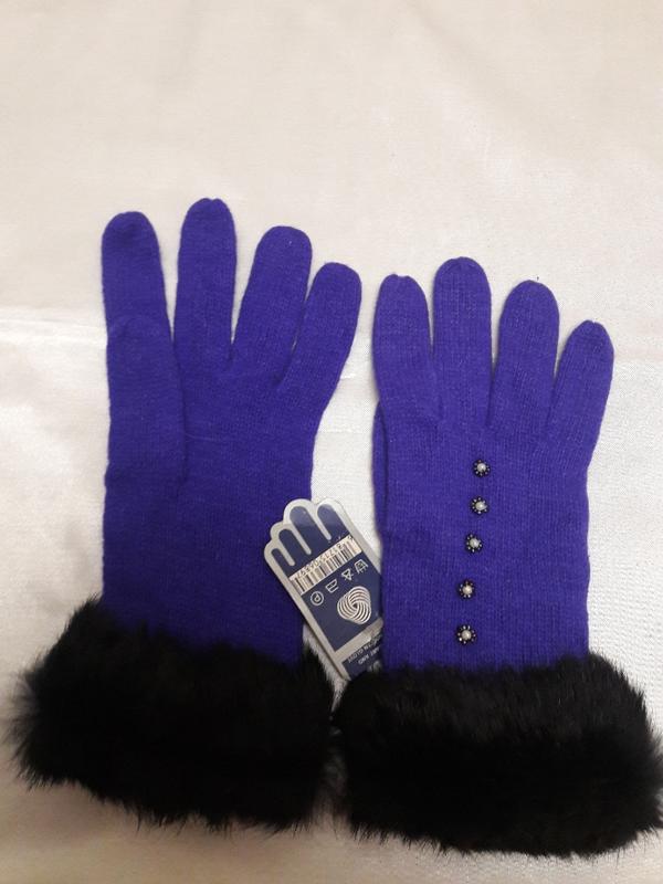Вязаные перчатки, шерсть, мех кролика. Размер 7,5
