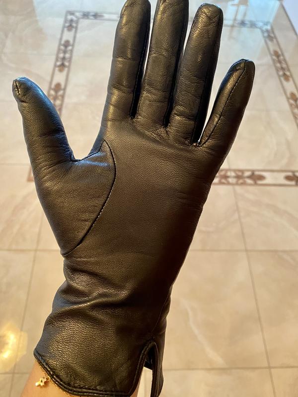 Хорошая, мягкая кожа, принимает форму рук. Кожа сохраняет тепло ваших рук, внутри утеплитель шерстяная, тёплая вязка. Элегантны. Материал: нат. кожа, цвет: чёрные, размер: 7 1/2( маленькие) Бренд- Еlegant.