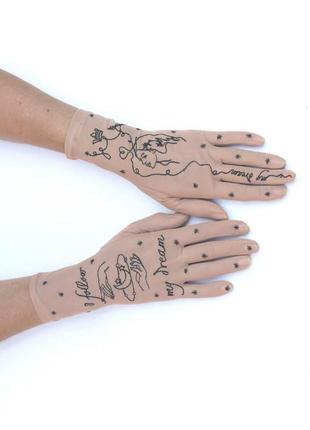 Перчатки тату из тонкой трикотажной сеточки. размеры: S, M, L