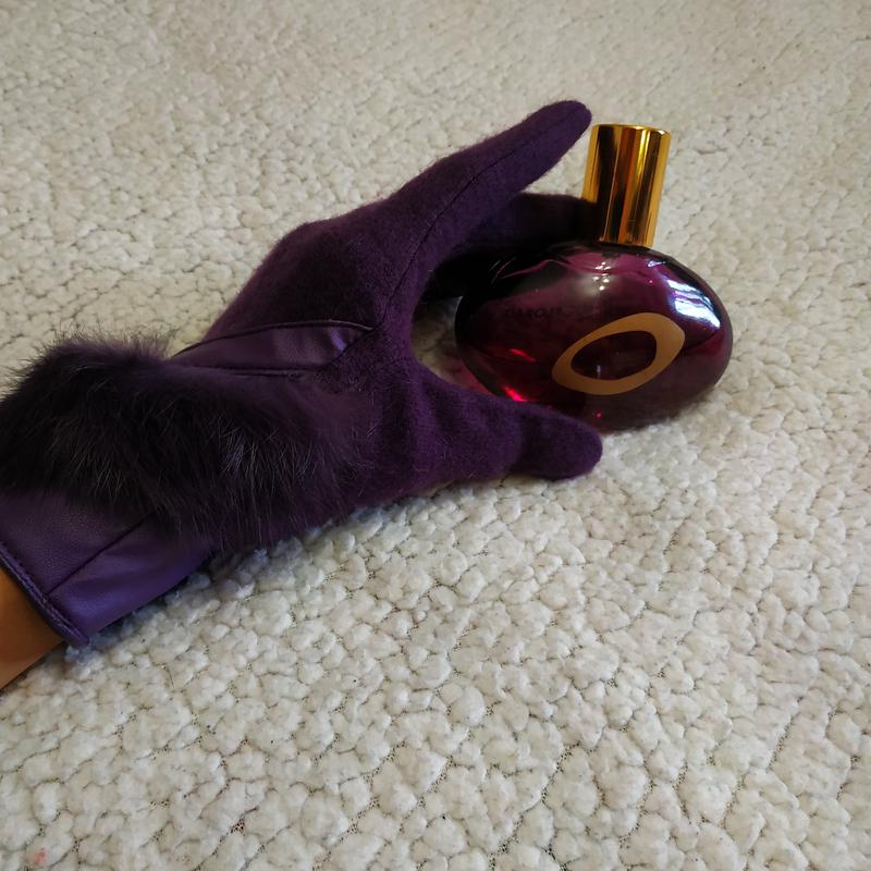 Вовняні рукавички з натуральним хутром. довжина від середнього пальця 23,5 см Нові, бирки немає.
