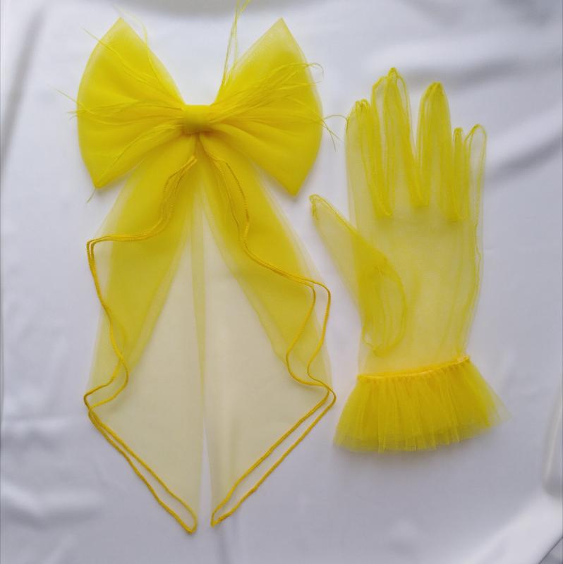 Наборчик Бант і рукавички в новому кольорі💛💛💛 Набір з тонкої євро-сіточки. Бант оздоблений натуральним пір'ям (можна замовити і без них) на французькій шпильці автомат. ✔️В наявності✔️ Розмір рукавичок - S, M. Бант шириною 16 см, довжина всього банта 35 див. Набіб доступний на замовлення в різних кольорах сіточки. Миру всім нам 💙💛 любові в серці, яскравих весняних фарб 🌸 і радості🤗