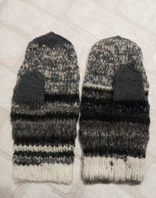 Вязаные, двойные, плотные, очень теплые рукавички, варежки. С добавлением шерстяной нити