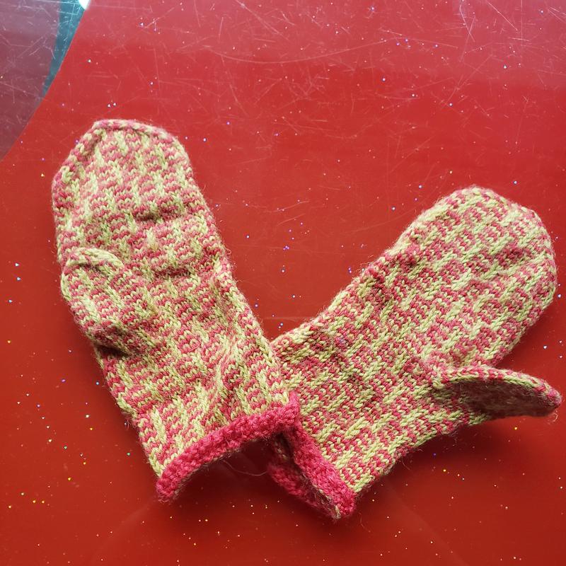 Вязаные варежки рукавички девочке 6-7-8л 116-122-128см Оранжевые с красным Однослойные, для теплой зимы или демисезон