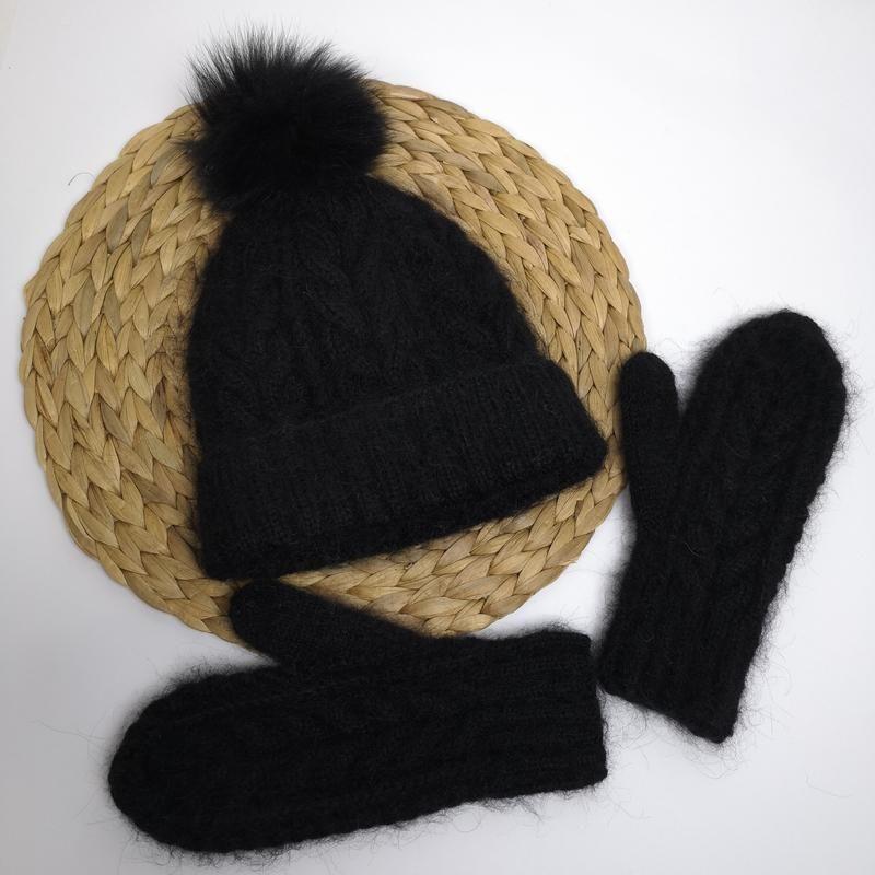 Черные варежки мохер меринос шерсть ручная работа в наличии
