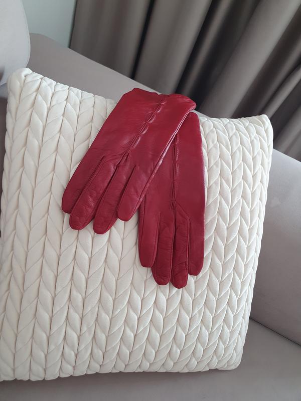 Рукавиці трендового кольору, натуральна шкіра, р M/L нові. Виробник Польща. довжина від кінчика середнього пальця до закінчення рукавиці 26, ширина 9.5см край виробу,ширина зап'ястя 8.5см, довжина середнього пальця 9см