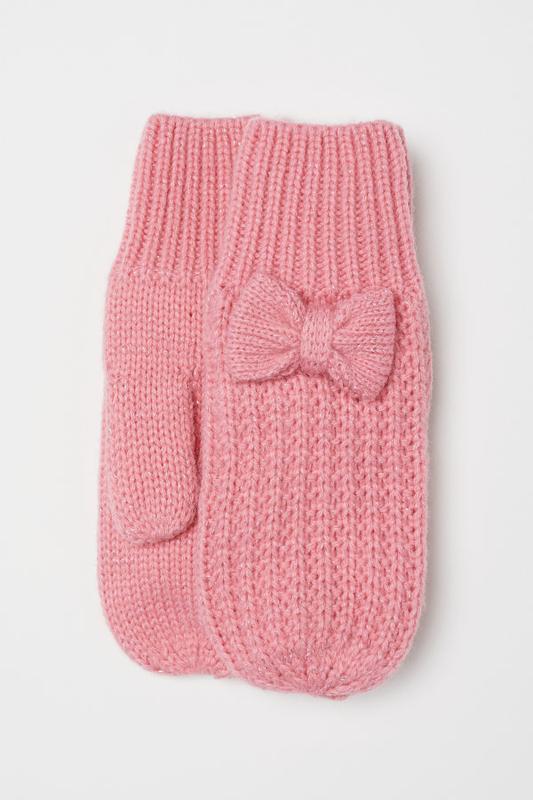 Варежки H&M из мягкого трикотажа с блестящей пряжей и декоративным бантиком на тыльной стороне ладони, утеплены флисом, р.122/128(6-8 лет), состав: 96% акрил, 3% полиэстер, 1% металлизированная пряжа.