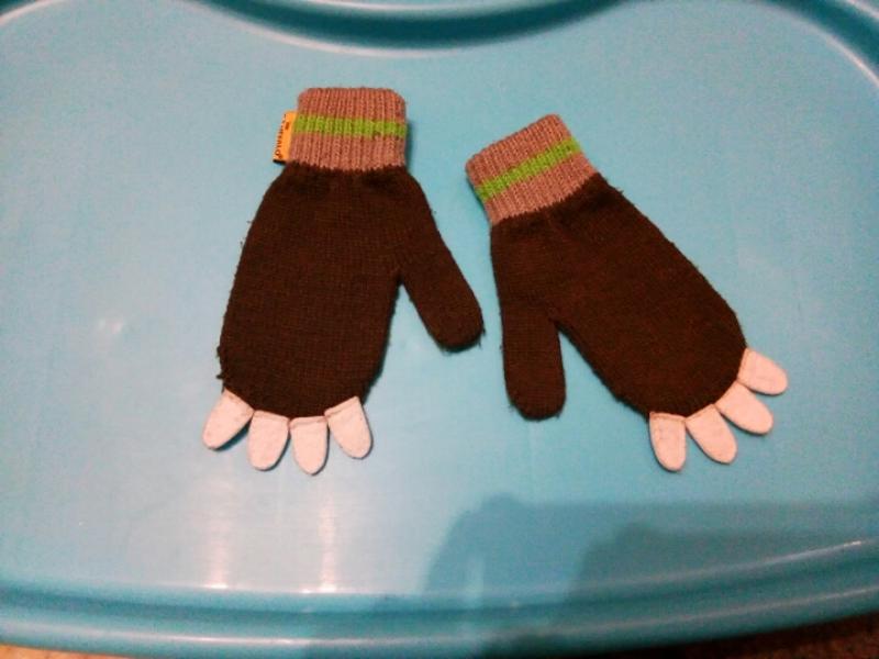варежки с коготками)на мальчика 3-4лет состояние хорошое,длина 14,5см,резинка3,5см,ширина 7см,палец 4см