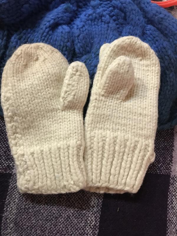 Шерстяные, добротные! Отдельно вывязано для указательного пальца, что очень удобно. Размер 24*12 см