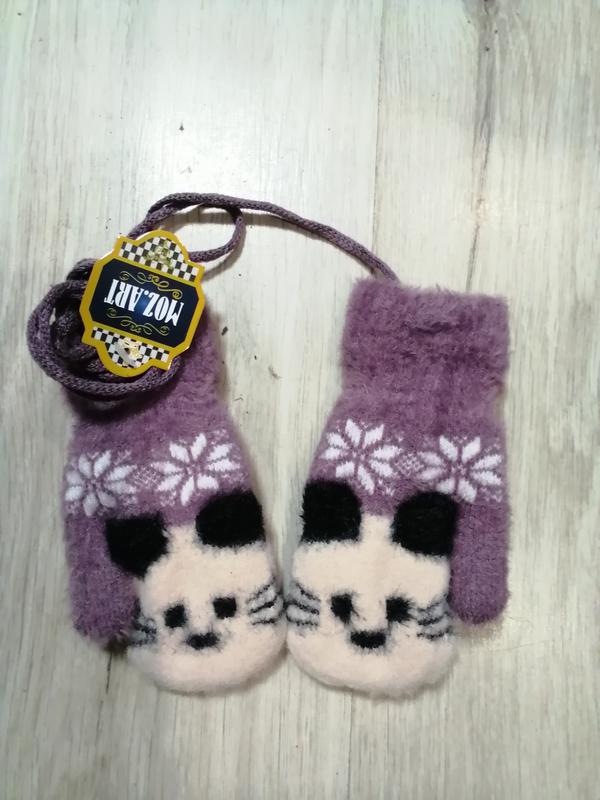 Теплые варежки Внутри мех, веревочек непотеряйка Очень тепленьки Нитей внутри нет, очень легко одеваются Размер 0-2 года