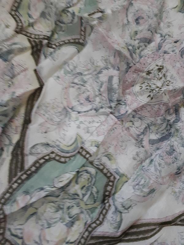 Платок, шелк, цвет как на фото. Выглядит симпатично. Интересный тонкий рисунок. Приятная тонкая ткань, шелк. Размер 51x51 см. Отсылаю УП, НП.