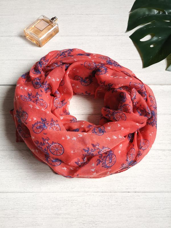 Стильный платок с велосипедами. Тоненькая, легкая. Есть пара не очень заметных зацепок (смотрите последнее фото).
