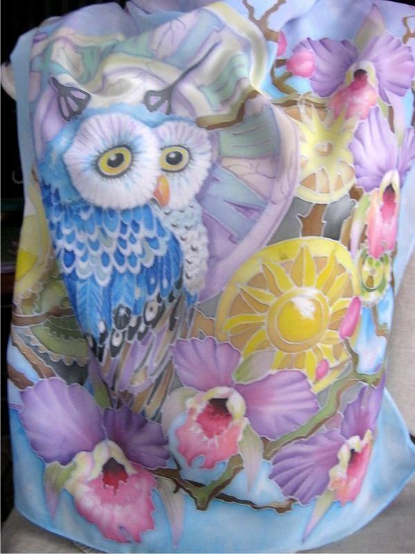 Красивый платок с оригинальным рисунком, выполнен в технике холодного батика. Этот легкий, шифоновый платок украсит вас и сделает неповторимой размер 75/75см, ткань шифон Товар под заказ