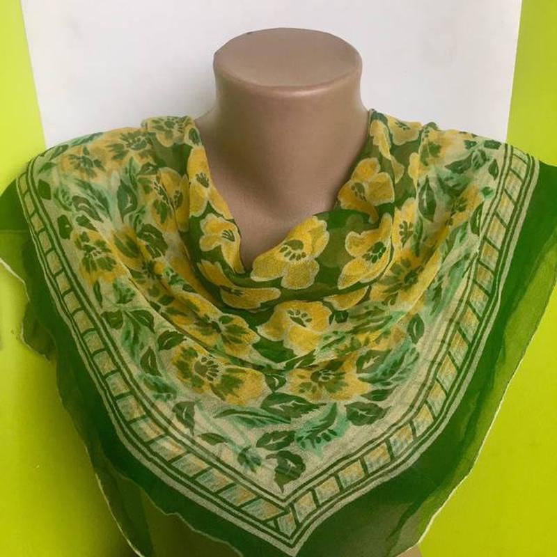 Легкий платостичный принт. Ткань легкая, тонкая, мягкая, полупрозрачная. Может быть, разновидность крепового шелка??🤷♀️ Размер около 70-75 см Ткань не гладкая, не плотная, как будто из крученой нити, при растягивании пружинит.../ смотрите фото 7 Есть некритические зацепки, разхождение нитей/ фото 9-10( на фото 10 наибольшая зацепка) Продаю много разных платков, очень много винтажных/ советских времен.