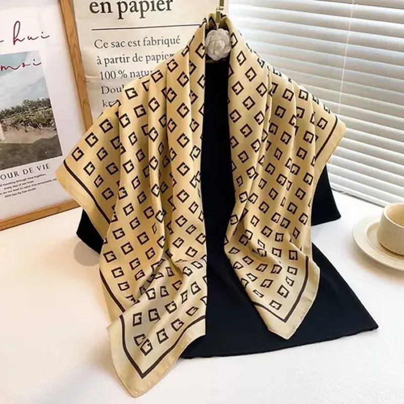 Тренд сезона 😍 Шикарный большой шелковый платок станет идеальным дополнением к Вашему образу👌 Такую платку можно носить повязав на шее, а также просто накинуть на плечи. Еще одним вариантом стилизации такого аксессуара является завязывание на голове различными способами. Помните и о том, что такой платок можно связать на сумку 👜 Ткань мягкая и приятная к телу, высокое качество! ✅️За счет модного дизайна и стильного сочетания цветов легко впишется в Ваш гардебор! ✅️ Материал: шелк армани (полиэстр) ✅️ Очень нежный и приятный на ощупь материал ✅️ Размер: 90*90 см ✅️ Цвет: коричневый, бежевый
