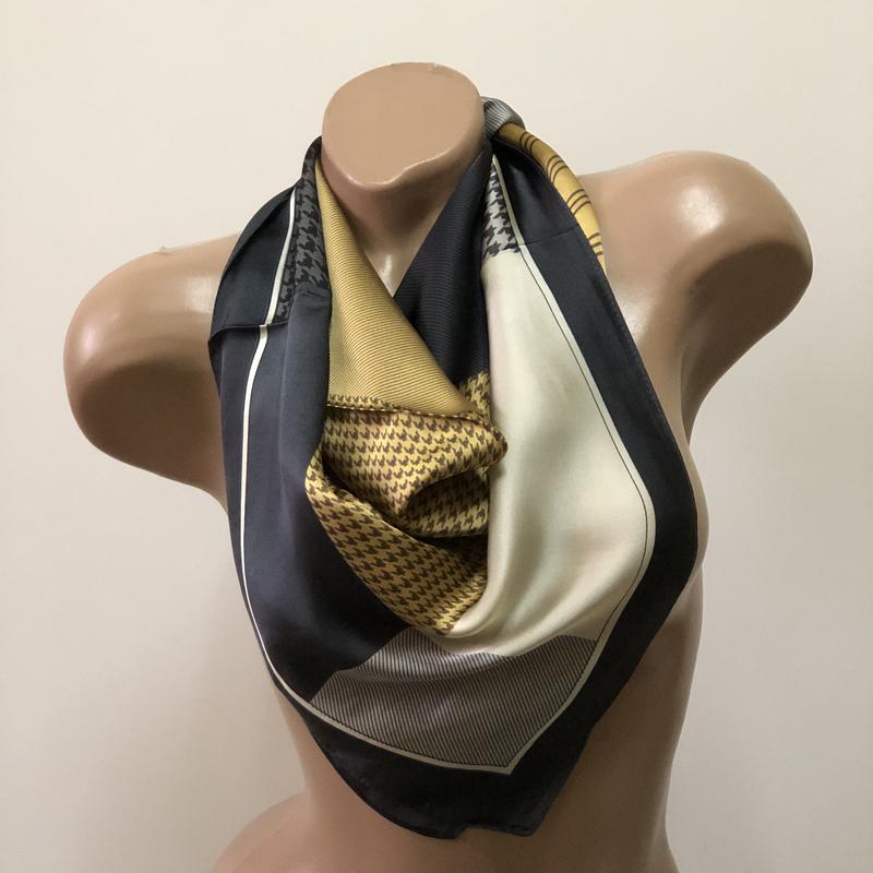 Стильна, ефектна жіноча хустка. Це важливий елемент виразного жіночого образу, який не тільки освіжає, привертає увагу, але й надає звичайному повсякденному одягу святкового вигляду. Завдяки тонкій та ніжній тканині, її можна поєднувати і з пальто, і з жакетом, і з блузою. Хустка - завжди бездоганний подарунок. Розмір - 68*69 см. Матеріал - 100% поліестер Колір - золотисто-синій ДЕФЕКТ - затяжка