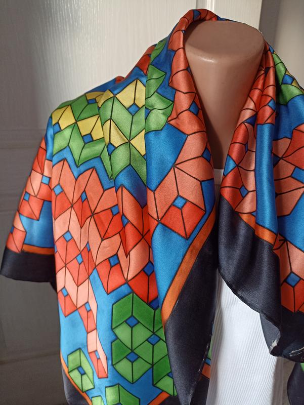 88 на 87см край шов роуль подпись посередине золотая краска шелк пилотный и очень красивый уп и нп отправляю из Днепра