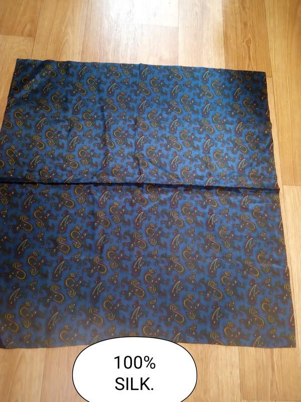 Тайский шелк, без этикеток, подшит вручную. 87×90 см. На последнем фото с одной стороны, только на просвет, присутствуют следы от предыдущего шва. Цвет как на первом фото. Плотный. ДИВЕТСЯ ПРИМЕНЕНИЕ ИНШИ МОЮ БЫСТВЕННЫЕ ПРОПИЦИИ!