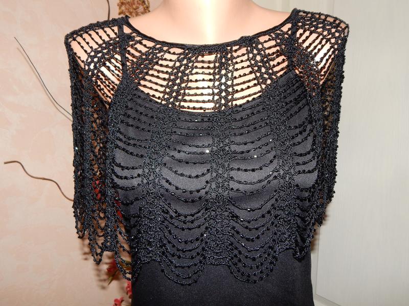 Нитки ірис, чорний стеклярус. Довжина 62см, завязки по 45см, висота 34см