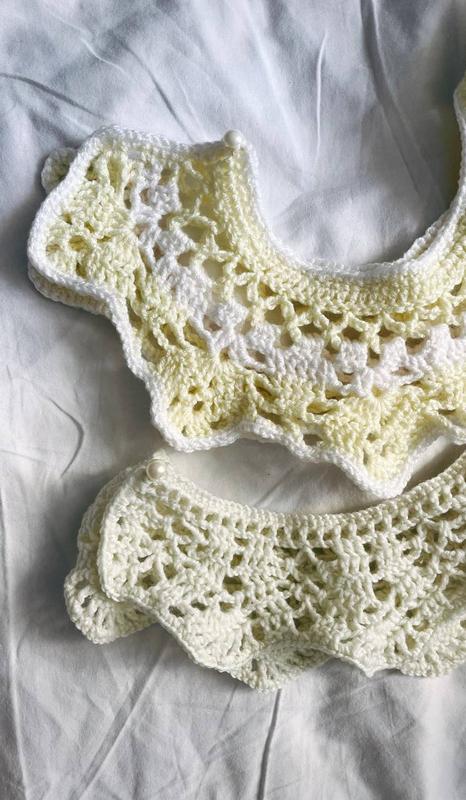 Тендітні ніжні комірчики з візерунками. Підійдуть до всього: поверх сукні, сорочки або світшоту. Також класно лягають на светри і класичні білі футболки. Один молочно-білий, і ще один кольору вершкового масла