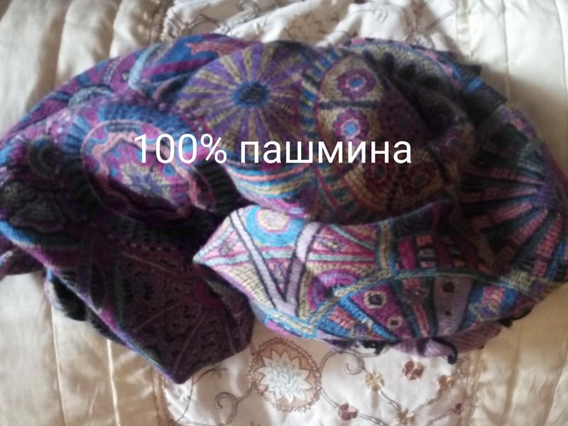 Мягчайшая, тончайшая шерстяная ткань пашмина – элитный материал из Индии. В составе 100% пашмины только пух гималайских кашемировых коз. Он очень тонкий: диаметр волоса 14 мкм.Пашминой называют очень тонкую и мягкую материю, которую изготавливают из пуха горных коз. С персидского языка слово «пашм» можно перевести как «мягкое золото». Ткань очень дорогая, потому что подшерсток собирают и прядут вручную, а одно животное дает всего лишь около 80 грамм обработанного и чистого пуха, пригодного для создания предметов одежды.Розмір 170смх70см+8см китиціБез паперовоі бірки