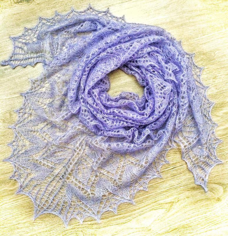 ОЧЕНЬ красивая ажурная шаль, связана спицами из норвежской пряжи, в составе которой 75% мохера и 25% шёлка. Невероятно воздушная и тёплая. Подойдёт для очень чувствительной кожи. Работа ручная, качественная! Размер 190*107 см (190см - размах, 107см - по центру вниз). Шаль согреет Вас в прохладную погоду и дополнит Ваш гардероб Шаль послужит приятным подарком девушке, женщине, как на Новый год, так и на День рождения. Возможно изготовление этой модели шали в любом другом цвете из натуральной высококачественной пряжи - кидмохер с шелком, шелк, шерсть, лен, хлопок. Отправляю Укрпочтой, Новой Почтой, Интайм. Товар под заказ