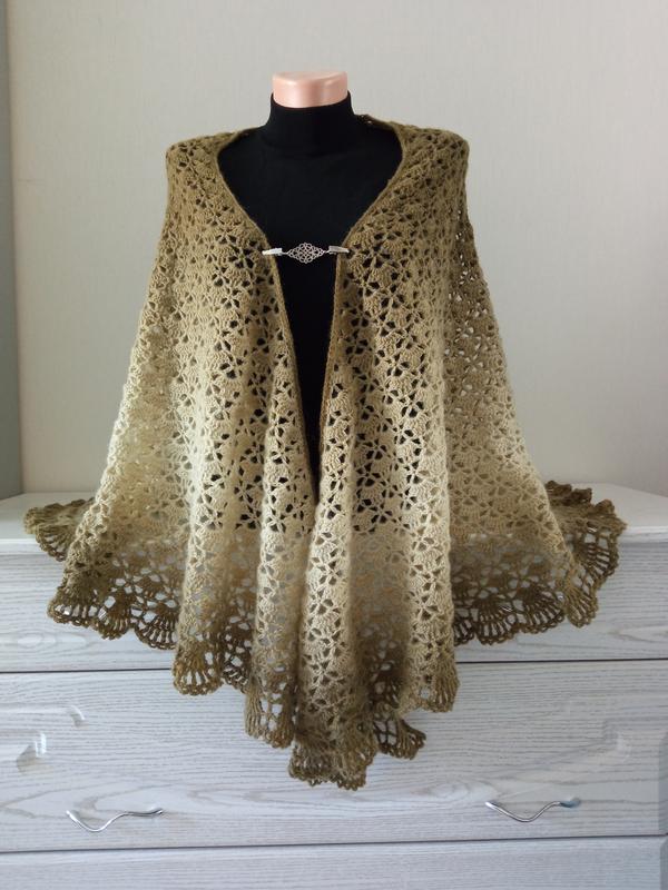 Шаль з ангори- омбре ручної роботи гачком. Чудового зеленого-хаки кольору - омбре. Буде оригінальним аксесуаром у Вашому гардеробі, а так само чудовим подарунком до свята для жінки. Відправляю зручною для Вас поштою.