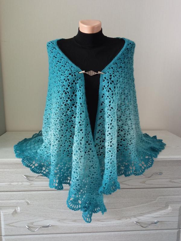 Шаль из ангоры- омбре ручной работы крючком. Отличного цвета - омбре бирюза. Будет оригинальным аксессуаром в Вашем гардеробе, а так же замечательным подарком к празднику для женщины. Отпрашиваю удобной для Вас по почте.