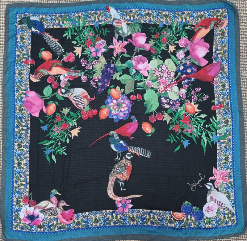 Шаль брендована, тканина тонка, приємна на дотик. Состав срезанный. У бирки есть нюанс, последнее фото. Размер - 119,5* 119,5 см.