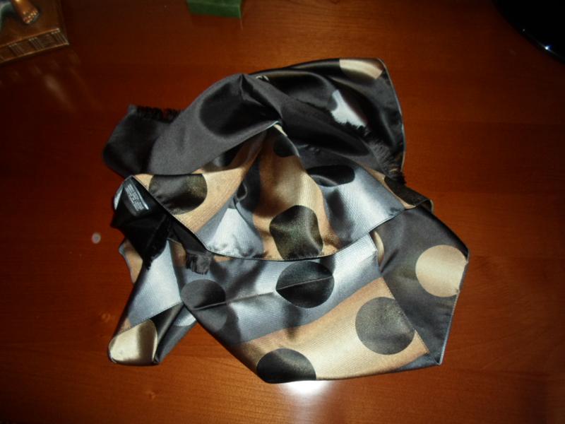 Шарф в горошек,легкий и приятный,длинный и не широкий.