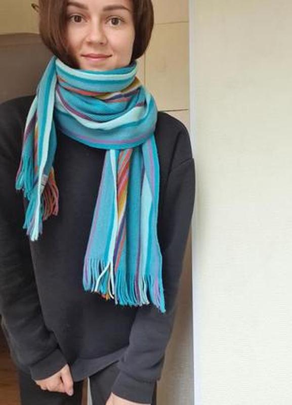 Яскравий в'язаний Блакитний з бірюзовим шарф/шаль в полоску. Ідеальний 150 грн