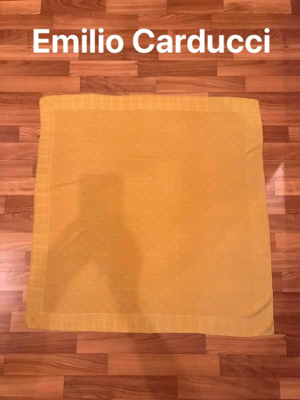 Базовый,очень похож платок известного бренда. Бирки срезаны. Цвет-горчично-золотистый. Материал атласный шёлк. Состояние отличное,есть небольшие точки и мелкие стетики на просвете,в носке не видно вообще. По всему платку монограммы бренда. Выглядишь очень дорого и красиво. Размер 84*86 Доставка Укрпочта и Нп, безопасной оплаты нет, читайте отзывы покупателей и раздел о продавце.