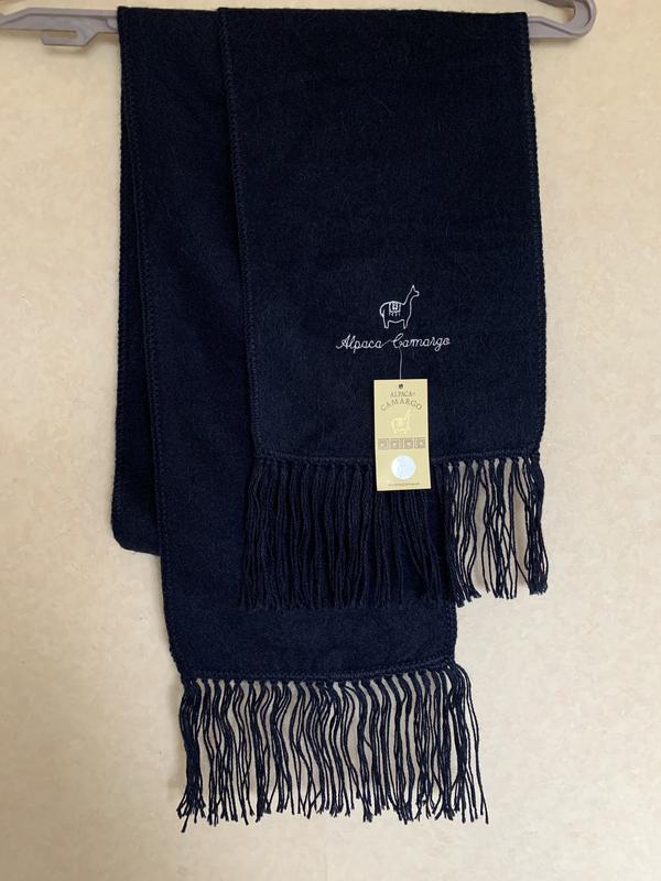 Шарф темно-синього кольору 100%альпака, новий. Відомий бренд Alpaca Gomorgo, Перу. Розмір 22/170+ 10см китиці з кожного боку . Ціна вдвічі меша за фактичну