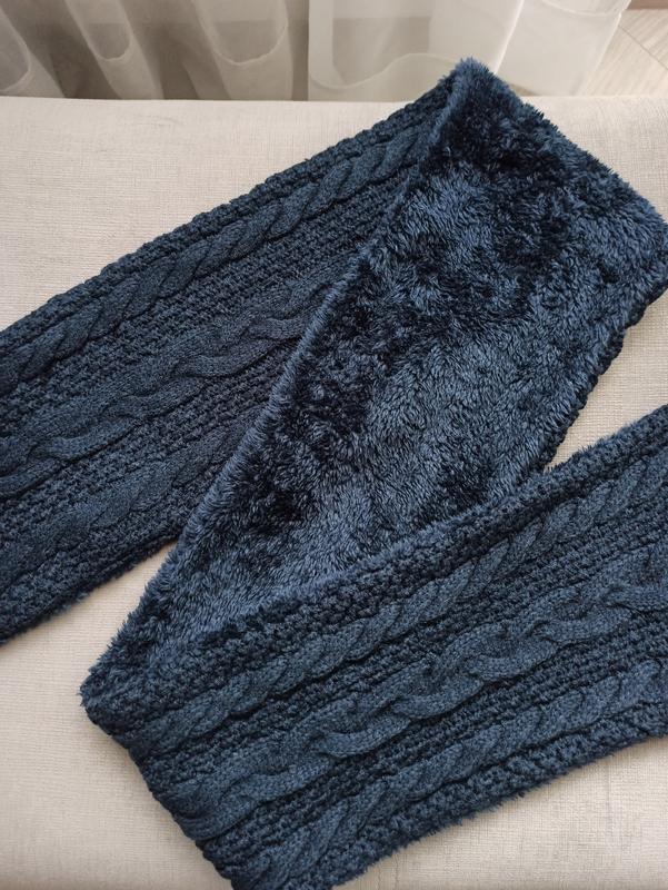 Теплая, двухсторонняя с ажурной вязкой.