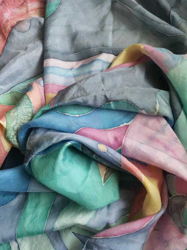 Авторська шовкова хустка в пастельних тонах. Невагома та ніжна. Красива та статусна. Розмір::88 на 84см Обробка краю -шов роуль. В єдиному екземплярі ! Дозвольте собі виділятись із натовпу)))