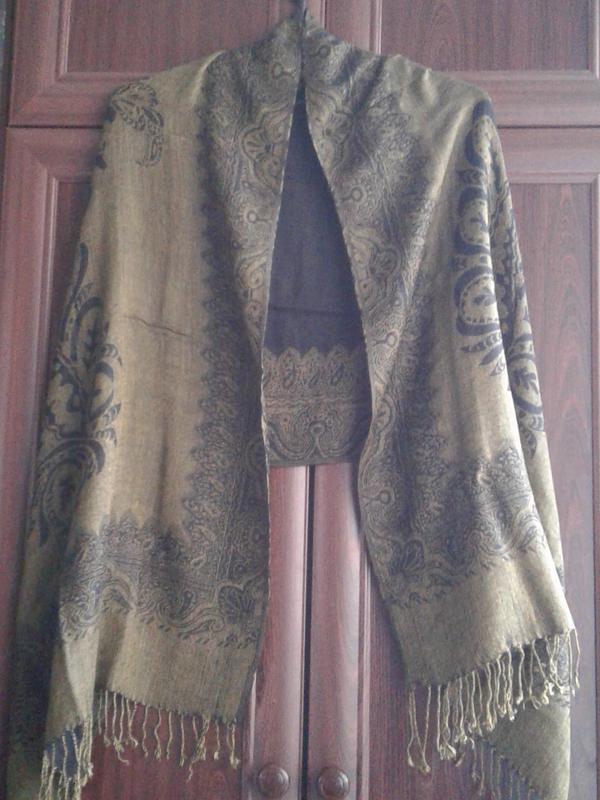 Роскошный ,большой , благородный жаккардовый кашемировый шарф палантин Pashmina двухсторонний узор . Черного цвета с желтым узором. Нежный и приятный по тактильным ощущениям . Он мягкий, теплый, но, при этом, не толстый. И абсолютно не колючий!По краям с кистями . Замечательный состав : 55% кашемир , 45% шелк. Размеры:170*66