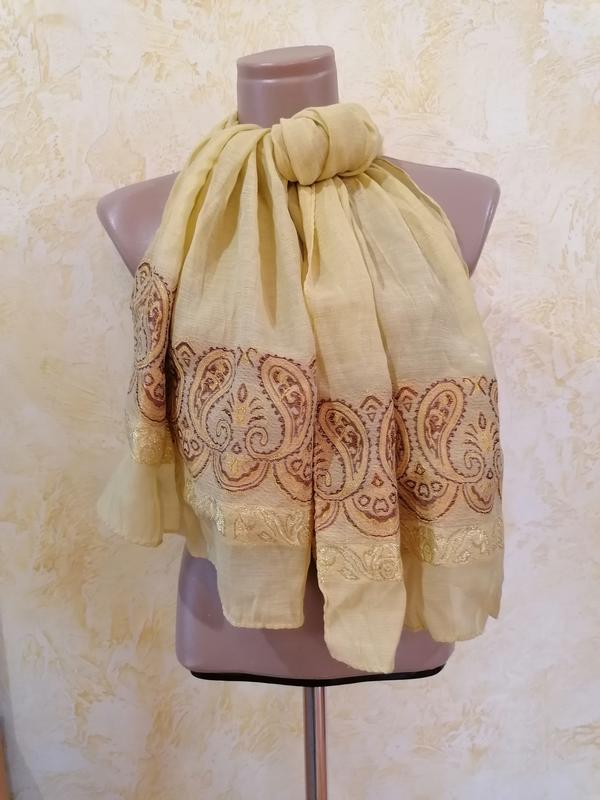 Восхитительный легкий шарф. В составе 35% коттона. Цвет медовый. Длина 180см. Ширина 51см.
