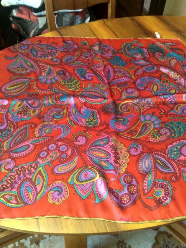 Искусственный сатиновый шелк. Приятная на ощупь. Яркие праздничные цвета. 78 х 78см
