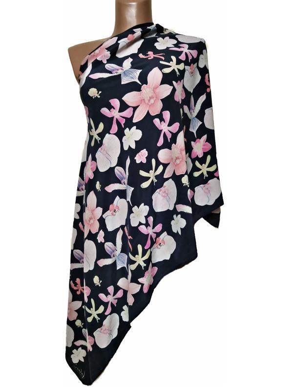 Шовковий палантин шарф fabric frontline zurich принт орхідеї швейцарська/4778/