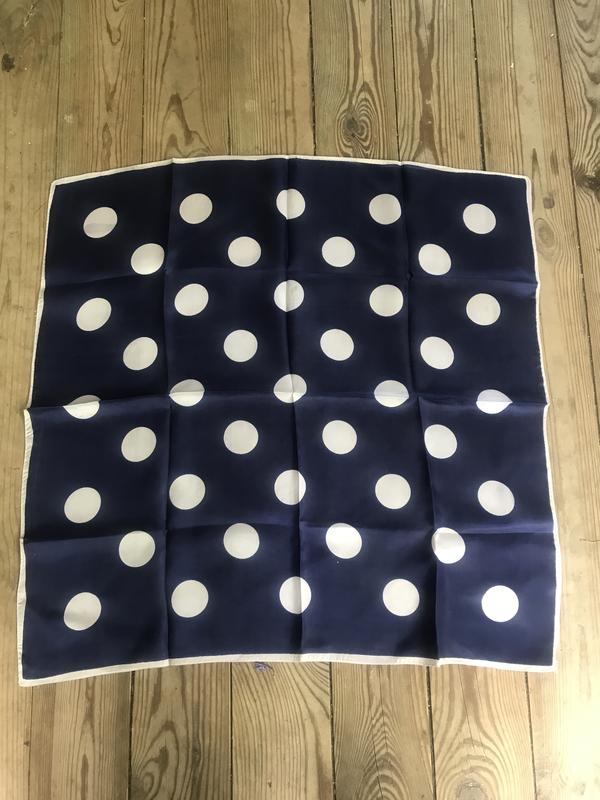 Ярка, очень эффектный платок в крупный горох. Размер:67х67 см. Безбирочек. Скорее всего, всего -ацетат. Не идеальное состояние, но очень красивое.