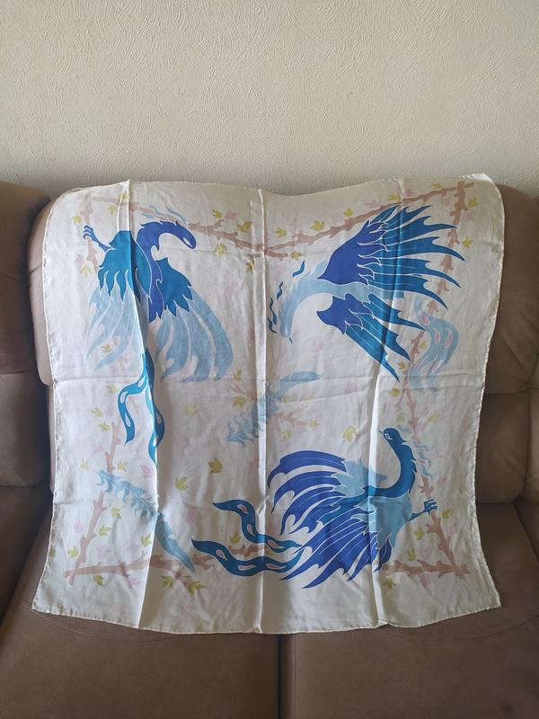 Дуже гарна хустка вінтаж, шовк з поліестером, дуже ніжна розцвітка, шов роуль, стан дуже хороший без особливих нюансів. Заміри: 81.5*85.5
