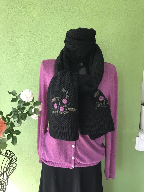 Шикарный теплый большой шерстяной шарф от NOA NOA. Цвет черный. Декор-вышивка ручной работы Размер-206х33 см.Очень стильный аксессуар.